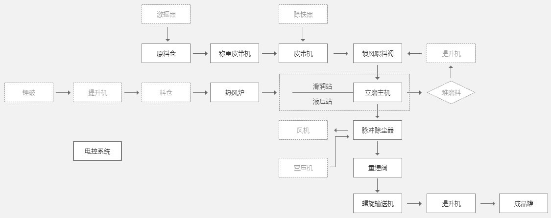 該立磨生產線位于崇明島啟隆鄉,為礦渣微粉生產線。 原料為礦渣,成品比表面積為380m2/g(細度在325目),成品產量為6t/h。 主要應用于攪拌站使用,作為添加料使用(輔助材)。