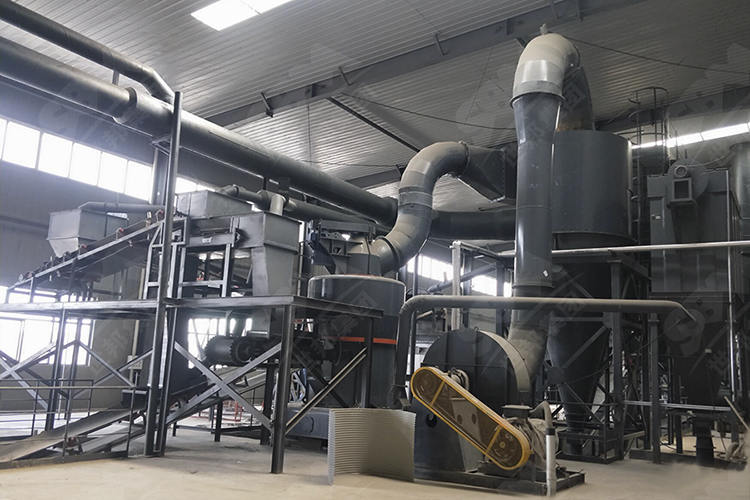 將物料破碎后連續均勻喂入磨粉機進行研磨,經分級機選粉后,符合細度標準的成品料在氣流作用下進入粉子收集階段。