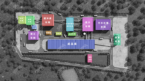 生產線由世邦集團為寧波交工礦業有限公司定制設計,主要包含一破車間、中碎車間、制砂車間、篩分車間、成品料倉、污水處理系統和裝車系統等單元構成。車間采用全封閉生產,采用多級破碎工藝和智能化的生產、運營管理系統,符合綠色礦山建設標準,有效的降低了物流、人力成本,社會和經濟效益明顯。