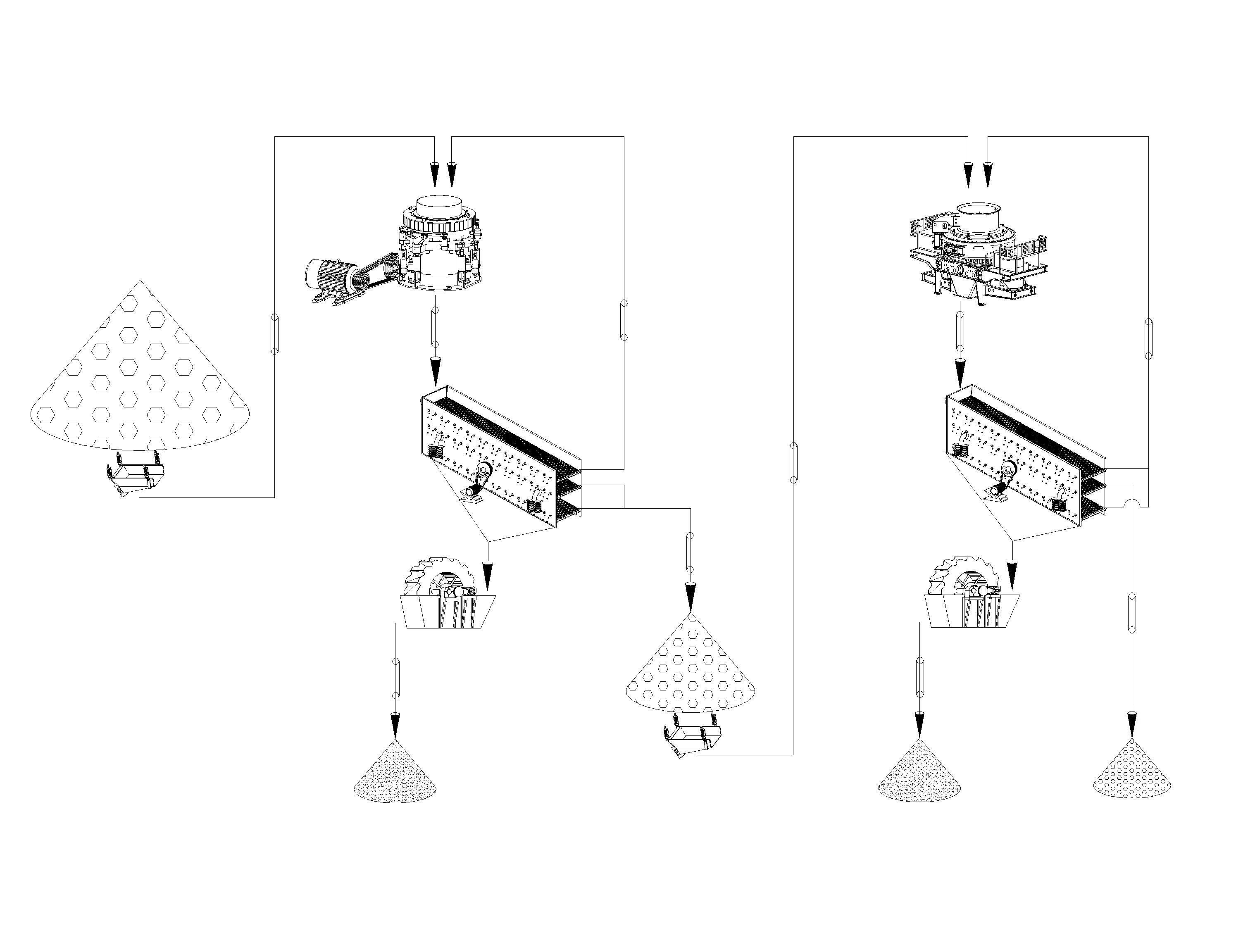 該客戶主要為攪拌站提供石子和機制砂,生產線毗鄰河道,購買設備主要想利用河卵石生產碎石和砂子。先后從公司購買兩條HPC220圓錐破生產線。主要設備:HPC220圓錐破一臺、VSI5X9532制砂機一臺等。
