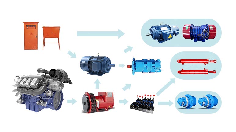 支持全液壓驅(qū)動(dòng)、純電驅(qū)動(dòng)、雙動(dòng)力驅(qū)動(dòng)及直聯(lián)+液壓驅(qū)動(dòng)多種動(dòng)力模式。其中,雙動(dòng)力系統(tǒng)可智能切換油電,無(wú)電地區(qū)柴油作業(yè),有電地區(qū)電力節(jié)能,顯著降低能耗開支。