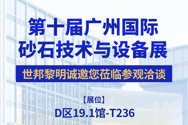 世邦黎明誠邀您蒞臨第十屆廣州國際砂石技術與設備展,展位:D區19.1館-T236,時間2024.9.23-25,地址:廣州·中國進出口商品交易會展館