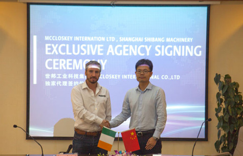 2016年9月10日,世邦工業(yè)科技集團(tuán)股份有限公司(SBM)與愛(ài)爾蘭知名履帶破碎篩分站制造商MCCLOSKEY完成獨(dú)家代理簽約儀式,Mccloskey 授權(quán)SBM 代理銷(xiāo)售其全系列履帶破碎篩分設(shè)備,并初步劃定中國(guó)及中國(guó)客戶(hù)在海外的投資地為合作區(qū)域。