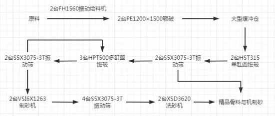 下面我們以多個(gè)廠家設(shè)計(jì)并成功運(yùn)行的案例為例,為大家介紹幾種時(shí)產(chǎn)500t左右的碎石制砂生產(chǎn)線配置。
