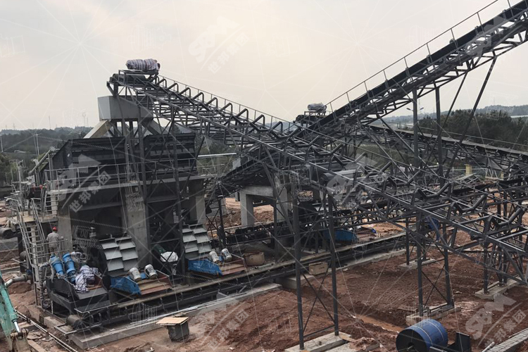 砂石加工一般由顎式破碎機進行粗碎,然后再由傳送帶運到細碎設(shè)備進行二次破碎即細碎,二次破碎后的物料由振動篩進行篩分,粒度≦50mm的運到制砂機制砂,其余的再由細碎設(shè)備繼續(xù)破碎。