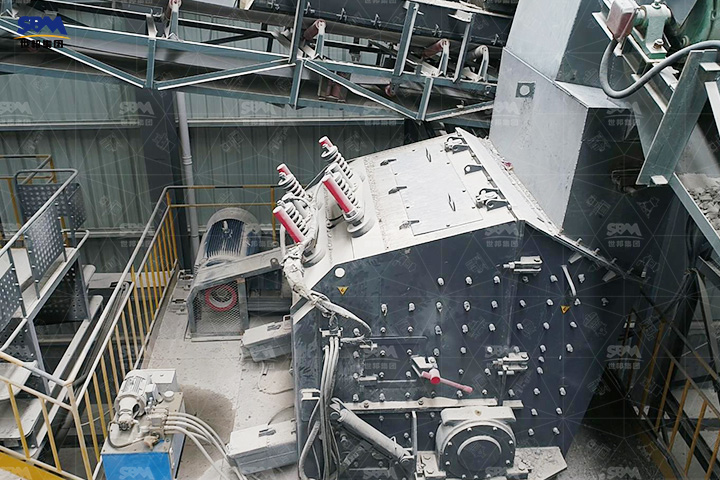 當物料進入板錘作用區時,受到板錘的高速沖擊而破碎,并被拋向安裝在轉子上方的反擊裝置上再次破碎。然后又從反擊破襯板上彈回到板錘作用區重新破碎。此過程重復進行,直到物料被破碎至所需粒度,由機器下部排出為止。調整反擊架與轉子架之間的間隙可達到改變物料粒度和物料形狀的目的。
