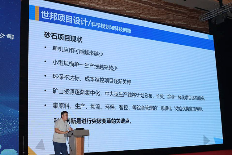 此次會議還邀請了業內知名專家學者、企業精英作專題報告。20日下午,作為特邀嘉賓,世邦集團技術經理張培林先生在會上作了《目前砂石行業形勢下利用科技創新和科學規劃的技術應用分享》主題報告。