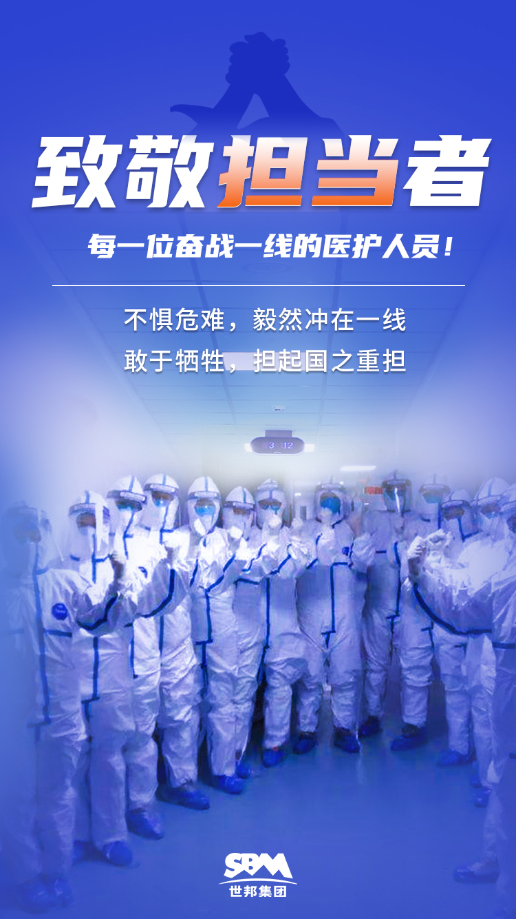 疫情當(dāng)前,世邦集團定向捐助馳援武漢醫(yī)療團隊,充分表達了對在國家危難時刻沖在前列線的醫(yī)護工作者的崇高敬意和誠摯慰問。世邦集團堅信,醫(yī)護工作者的犧牲與擔(dān)當(dāng)是一種崇高的精神!這種精神為國家、社會、人類所需要!我們需要尊重、維護、傳遞這種充滿正能量的價值觀!