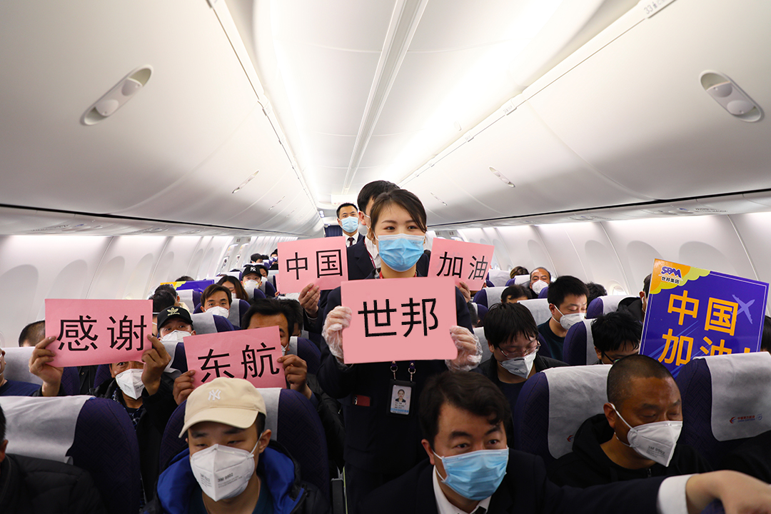 包機(jī)方案確定后,在“世邦疫情防控指揮部”的領(lǐng)導(dǎo)下,多部門(mén)緊急聯(lián)動(dòng),分工合作,迅速確定乘機(jī)人員信息和接送機(jī)工作。在確定人員信息時(shí),優(yōu)先安排工藝、生產(chǎn)、質(zhì)檢等供應(yīng)鏈生產(chǎn)部門(mén)一線職工,爭(zhēng)取盡快恢復(fù)公司產(chǎn)線產(chǎn)能;所有航班搭乘員工,需要經(jīng)過(guò)健康安全三級(jí)審查,確保疫情防控得到保障。公司派出專車,分散到省內(nèi)各區(qū)縣接員工至起飛機(jī)場(chǎng)集合,東航在機(jī)場(chǎng)出發(fā)廳設(shè)置了專門(mén)的接待點(diǎn),開(kāi)設(shè)專用值機(jī)柜臺(tái)和專用安檢通道,并在登機(jī)口協(xié)助旅客通過(guò)手機(jī)線上填寫(xiě)健康申報(bào)表。在候機(jī)樓和登機(jī)口分別對(duì)搭乘人員進(jìn)行體溫測(cè)量。航班上,F(xiàn)M9390航班機(jī)長(zhǎng)通過(guò)廣播為這趟航班給予特殊致辭,勉勵(lì)大家“一同共克時(shí)艱,迎接春暖花開(kāi)”。