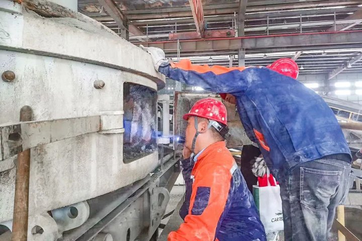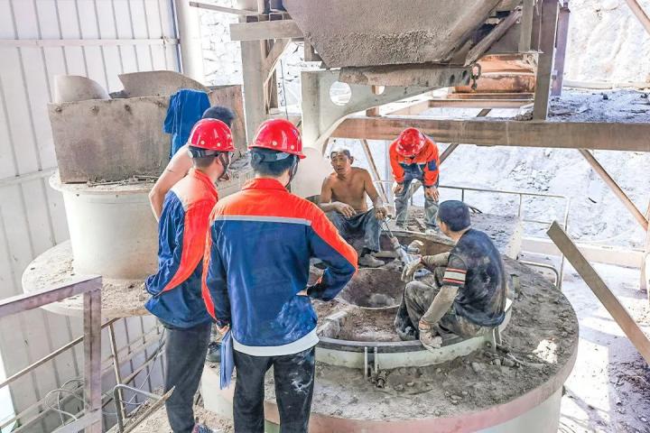 此項目主要助力于中鐵九局高速項目標段建設,生產線原料為礦山洞渣。因常德地區地質特點,山體石泥混合,原料洞渣石泥土含量40%左右,現場除土系統壓力較大,導致破碎環節土含量大帶來的堵機及其它問題,服務人員進行細致、全面、高規格的檢查后,現場分析,給出系統化解決方案,在短時間內有效解決這一問題。