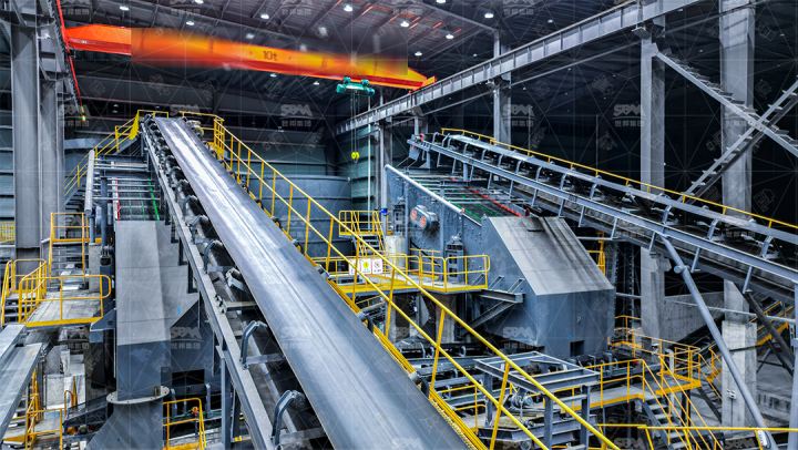 生產(chǎn)線采用模塊化設計,包括給料及粗碎模塊、除泥及天然砂篩分模塊、緩沖庫模塊、中細碎模塊、篩分模塊、整形制砂模塊、成品庫模塊和環(huán)保處理模塊等。