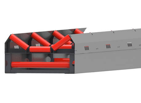 傳統(tǒng)皮帶機(jī)一般使用槽鋼和托輥架搭配使用,機(jī)架相對單薄。而B6X皮帶機(jī)在這一點(diǎn)上做了變革——使用C型鋼代替了槽鋼并配備側(cè)護(hù)板,基于這個改進(jìn),B6X系列皮帶機(jī)機(jī)架總體鋼性得以大大提升。