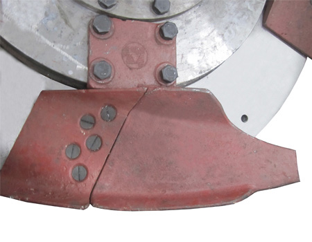 相對于傳統一體式鏟刀,我們采用的分體式鏟刀在刃部磨損后,僅需要更換刀刃,避免了鏟刀整體更換浪費材料,極大的幫助客戶節省易損件更換成本。此外,我們采用的曲面設計可以將物料導向立面,使磨輥磨環上、中、下部都能粉磨,使其均勻磨損,同時也增大了有效工作面積,從而提高了生產效率。