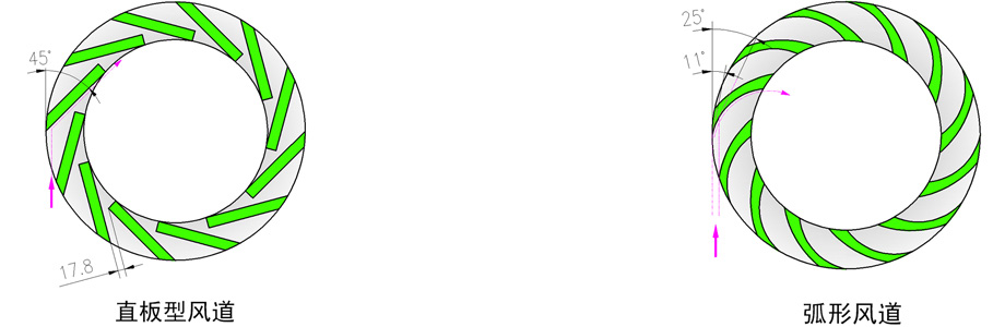 傳統磨機的進風蝸殼觀察門內部門板內面向外凸出,與進風蝸殼內面不在一個平面上,這樣就易產生渦流效應,增加系統能耗。MTW歐版梯形磨粉機采用內部門板內面與進風蝸殼內面在同一曲面上,這樣就能有效的避免渦流效應,風量損失小,物料流動性更好。