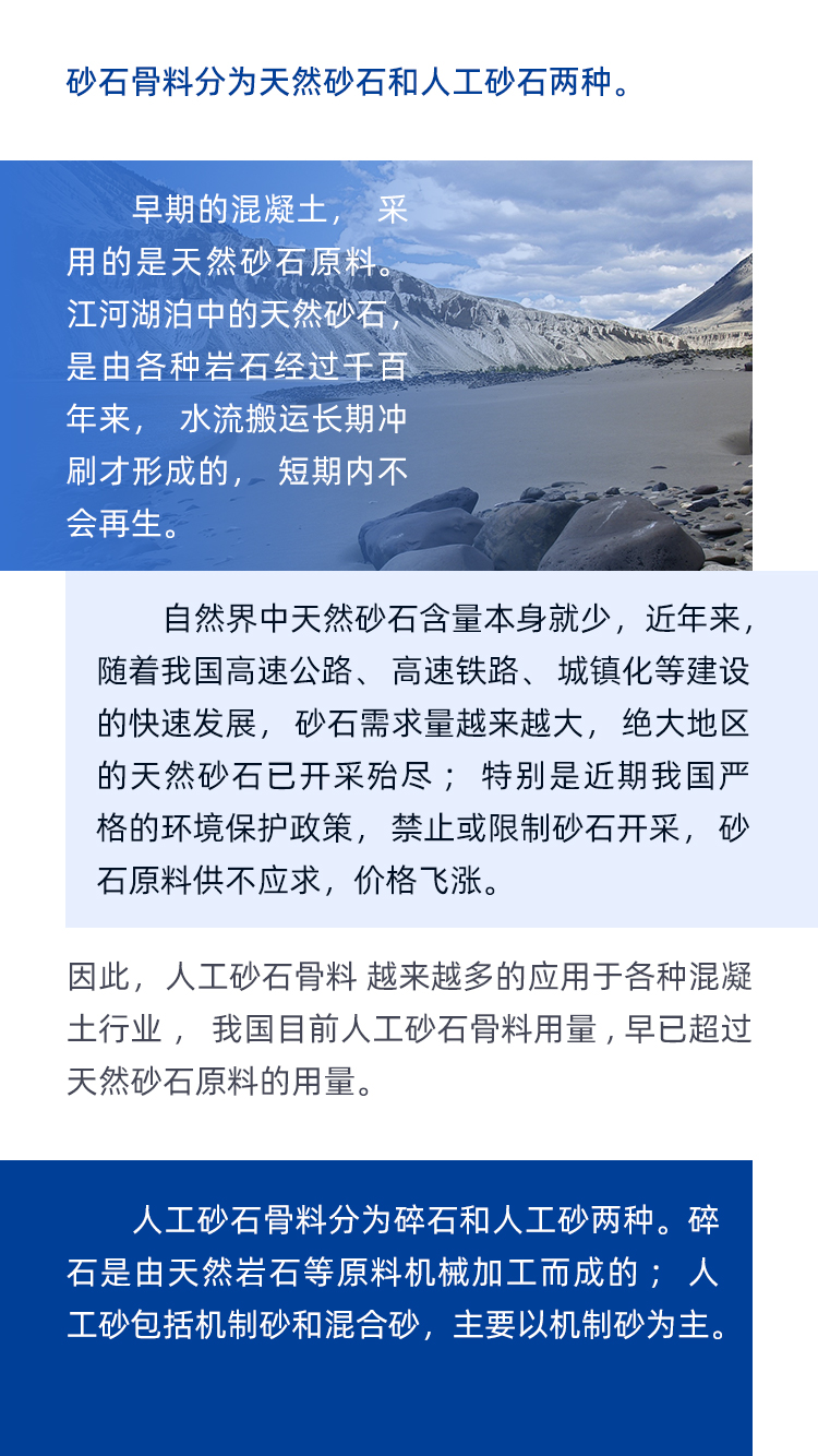 砂石骨料占混凝土體積的70% 、質量的80%,做好混凝土機制砂石骨料不僅能夠滿足高標準的混凝土生產需求、提高混凝土產品質量性能,降低混凝土塌落度損失,泵送壓力損失小,還可以有效節約混凝土生產成本,提高商混企業經濟利潤……