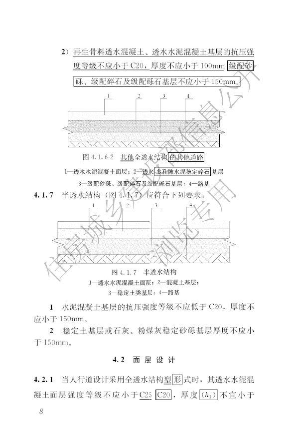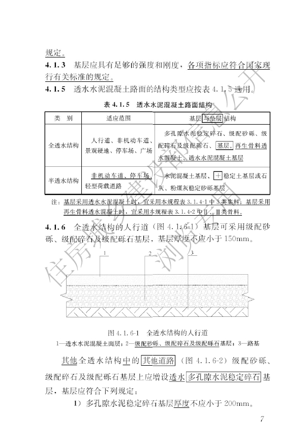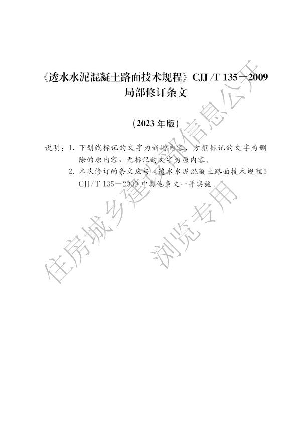 本規程適用于新建的城鎮輕荷載道路、園林中的輕型荷載道路、居住區內道路、廣場和停車場等透水水泥混凝土路面的設計、施工、驗收和維護。本規程不適用于嚴寒地區、濕陷性黃土地區、鹽漬土地區、膨脹土地區的路面。
