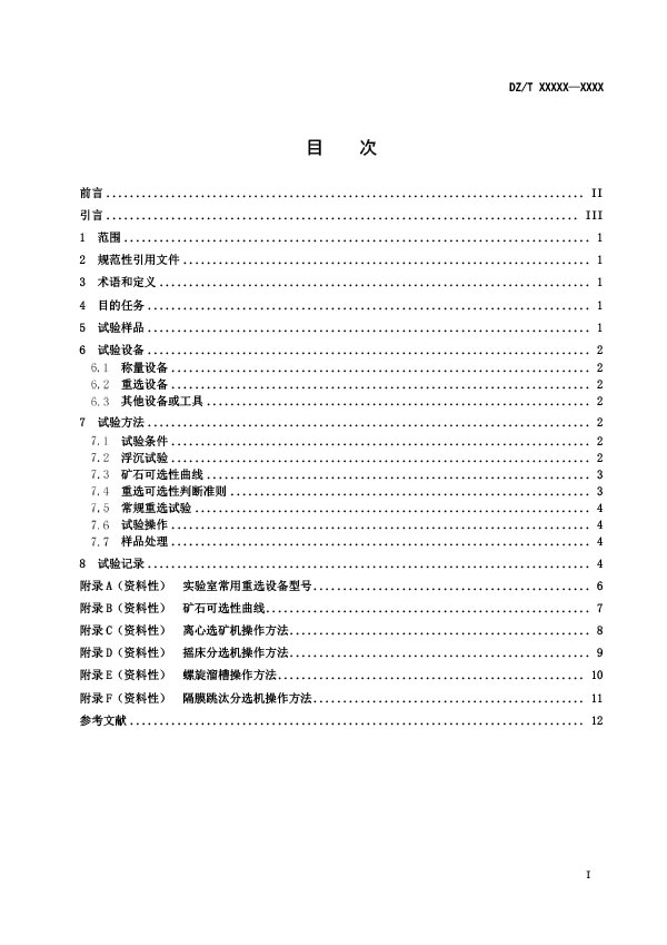本文件給出了固體礦產實驗室重選試驗相關的術語和定義,明確了目的任務、試驗樣品、試驗設備,試驗方法和試驗記錄等要求。本文件適用于固體礦產實驗室選礦試驗中的重選試驗。