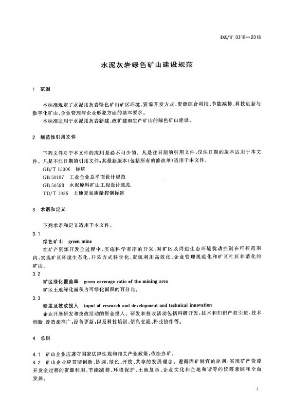 本標準規定了水泥用灰巖綠色礦山礦區環境,資源開發方式、資源綜合利用、節能誠排、科技創新與數字化礦山、企業管理與企業形象方面的基本要求。本標準適用于水泥用灰巖新建、改擴建和生產礦山的綠色礦山建設。
