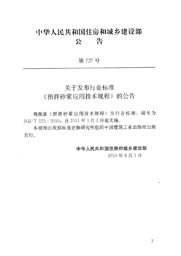 本規(guī)程規(guī)定了預(yù)拌砂漿的定義,分類、標(biāo)記、技術(shù)要求,試驗方法、檢驗規(guī)則及訂貨與交貨。本規(guī)程適用于預(yù)拌砂漿的生產(chǎn)質(zhì)量控制,采用預(yù)拌砂漿的一般工業(yè)與民用建筑物的砌筑、抹灰,地面(屋面)工程和裝飾裝修工程的施工質(zhì)量控制和驗收。
