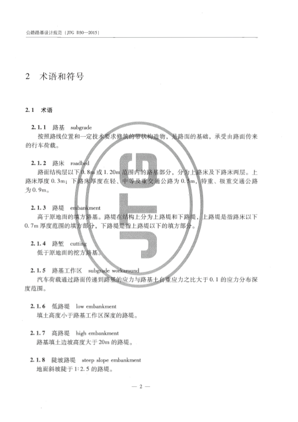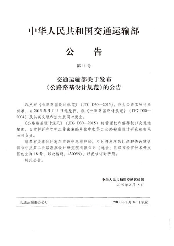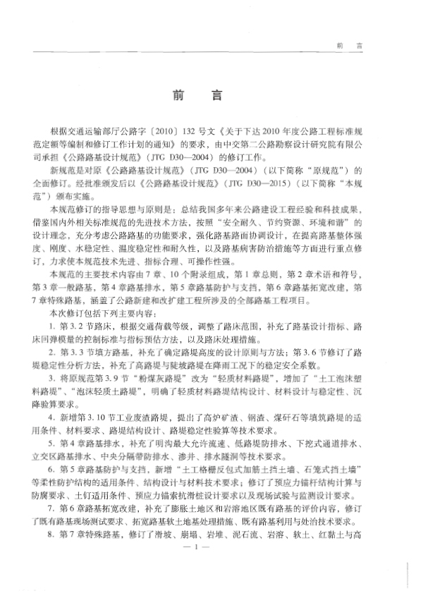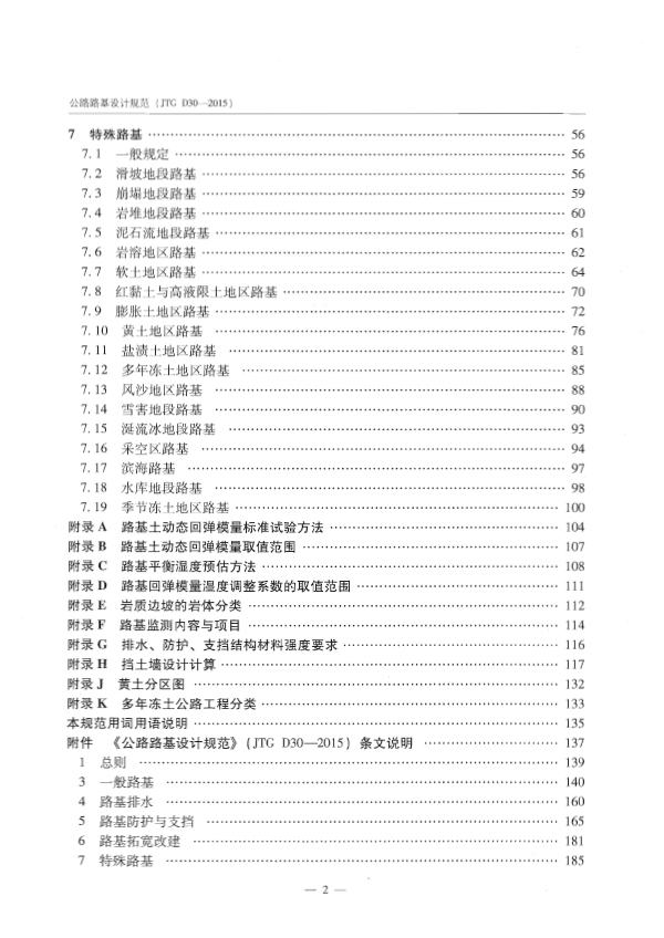 本規范總結我國多年來公路建設工程經驗和科技成果,借鑒國內外相關標準規范的先進技術方法,充分考慮公路路基的功能要求,強化路基路面協調設計,在提高路基整體強度、剛度、水穩定性、溫度穩定性和耐久性,以及路基病害防治措施等方面進行重點分析。