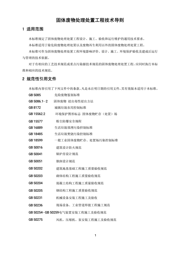 為防治環境污染,保護環境和人體健康,制訂本標準。本標準規定了固體廢物處理處置工程設計、施工、驗收和運行維護的通用技術要求,適用于除危險廢物處理處置以及廢物再生利用以外的固體廢物處理處置工程。