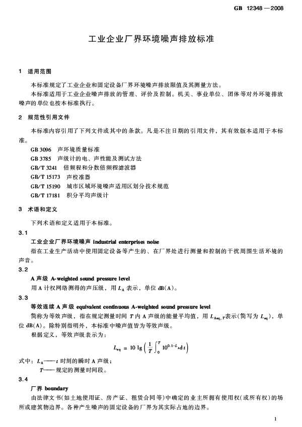 本標準規定了工業企業和固定設備廠界環境噪聲排放限值及其測量方法。本標準適用于工業企業噪聲排放的管理、評價及控制。